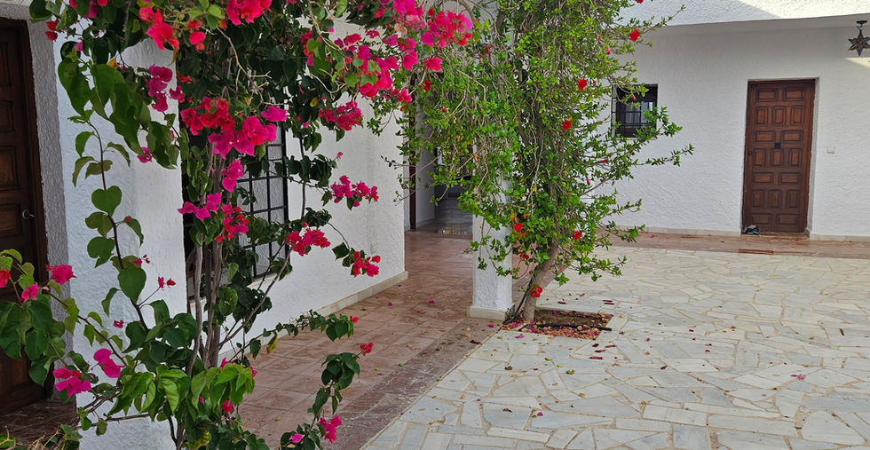 La villa se organiza en torno a un encantador patio andaluz, al que se abren todas las estancias, creando una atmósfera íntima y luminosa. Dispone de 6 habitaciones dobles, todas con baño privado, aire acondicionado reversible y ventilador de techo, lo que la convierte en una opción ideal para familias o grupos de amigos durante cualquier época del año.